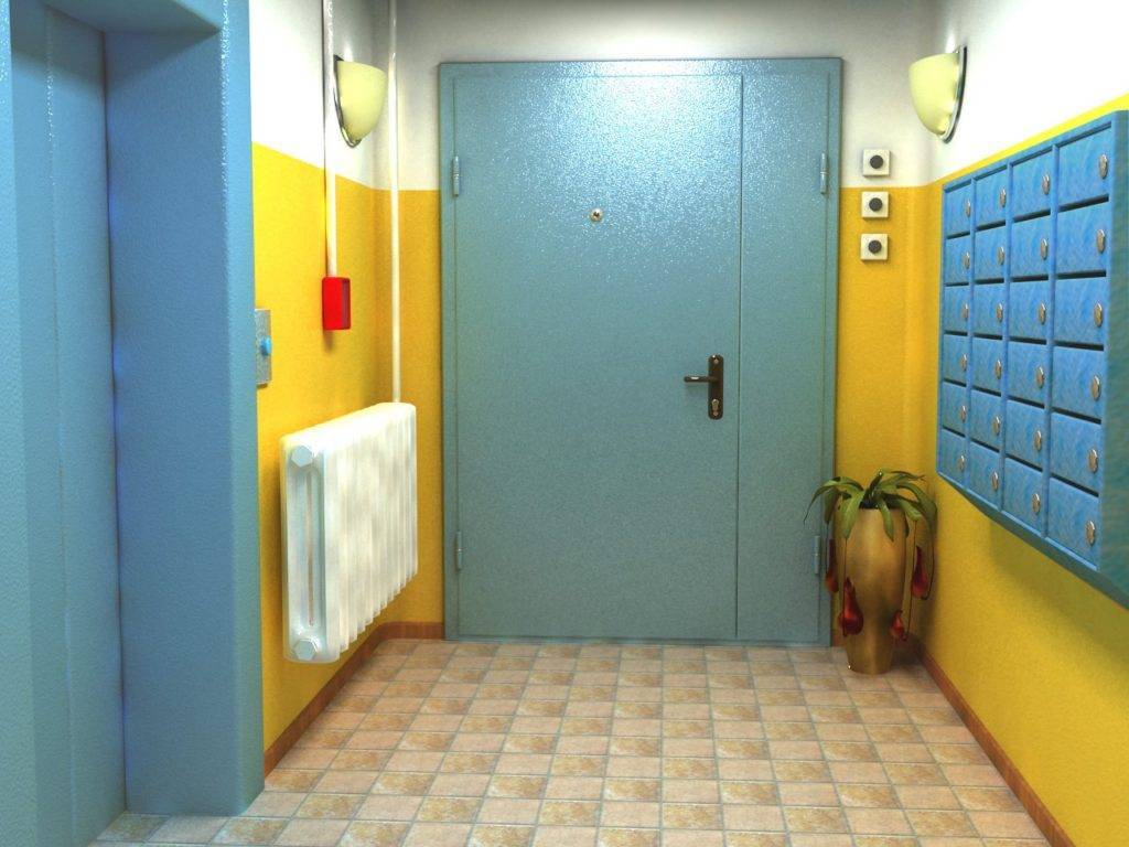 Создание небольшого тамбура на лестничной клетке значительно повышает защиту квартир от проникновения злоумышленников. Дополнительное полотно содействует изоляции от внешних шумов и еще лучше преграждает путь холоду.