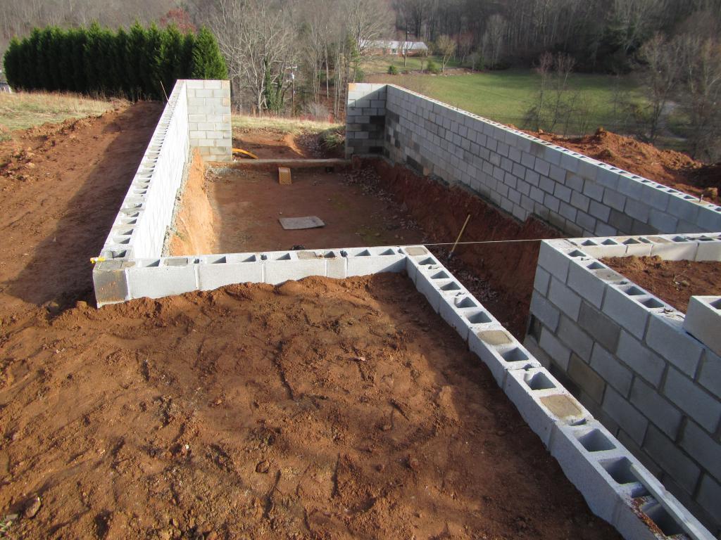 После подготовки котлована приступают к заливке бетона для фундамента. Для повышения прочности всего сооружения бетонное основание рекомендуется армировать. По краям фундамента выпускают арматуру, на которую будут монтироваться стены. Когда бетон высохнет, приступают к установке стен.
