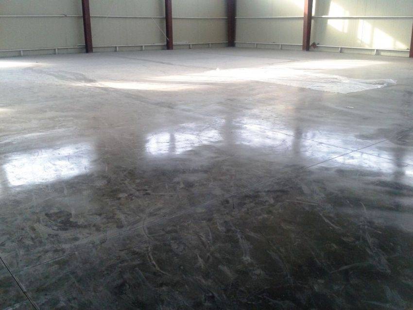 После окончательной полировки бетонный пол тщательно очищается от пыли и покрывается защитным раствором (краской, лаком или пропиткой).