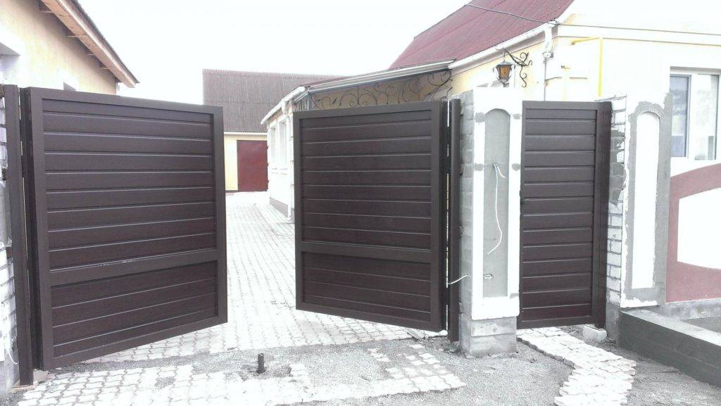 Инструменты для обработки древесины доступны и не требуют специальных навыков. В то время как для обработки металлических деталей понадобится сварочный аппарат, угловая шлифовальная машина. Правильно обработанная качественная древесина прослужит не одно десятилетие, даже в суровых погодных условиях. Деревянное полотно при поломке можно легко отремонтировать, заменив доску. Самые простые в изготовлении и самостоятельной установке – распашные деревянные ворота.