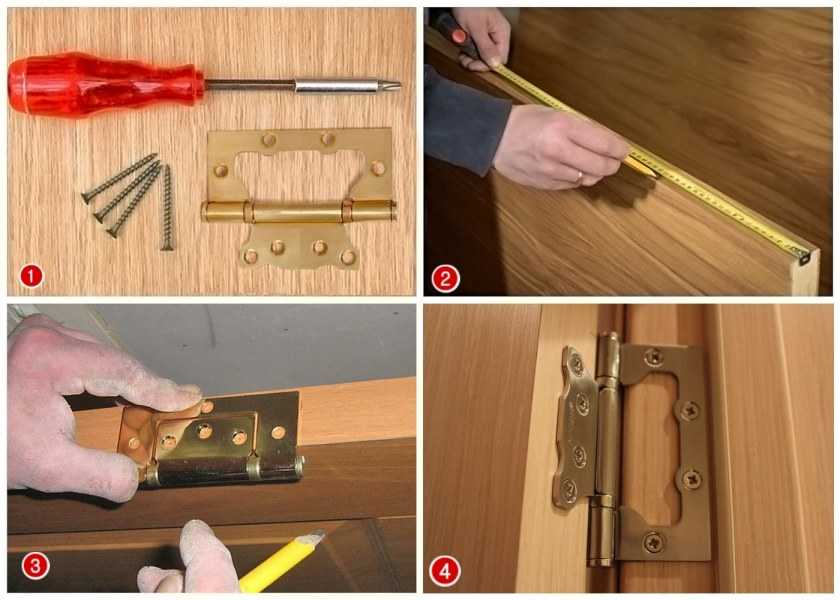 Когда дело доходит до установки дверных петель, то их утапливают в дверь и коробку на глубину, которая равна толщине пластины петли. При выполнении разметки используют острый нож. Углубление для полотна петли вырезают с использованием стамески.