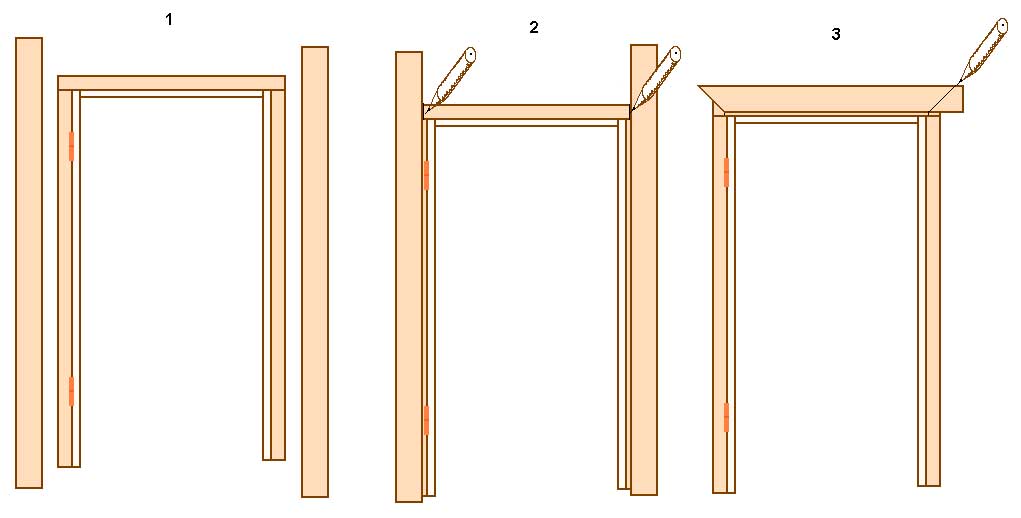 - Все доборы прикрепляются при помощи длинных шурупов к раме двери.