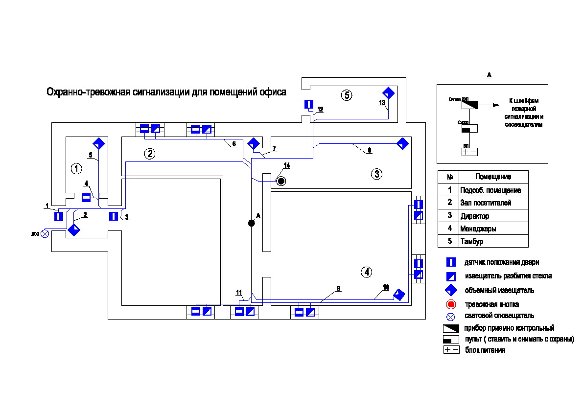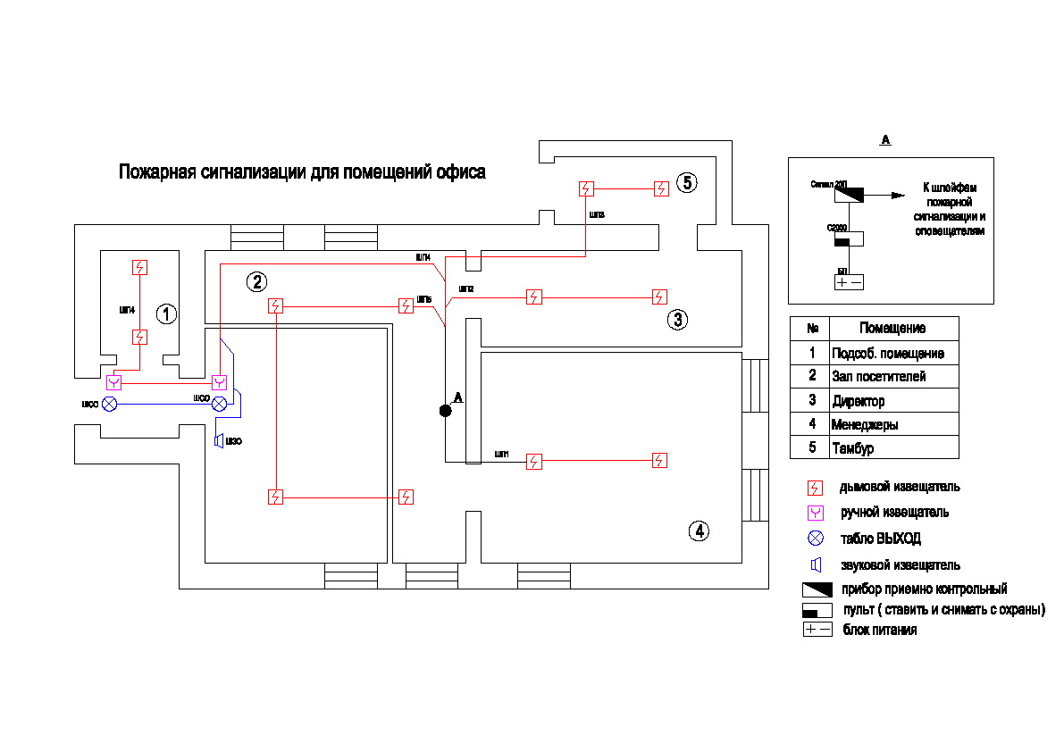 Несмотря на индивидуальную проектировку, каждая система пожарной сигнализации состоит из стандартных элементов, объединяемых в одну схему: