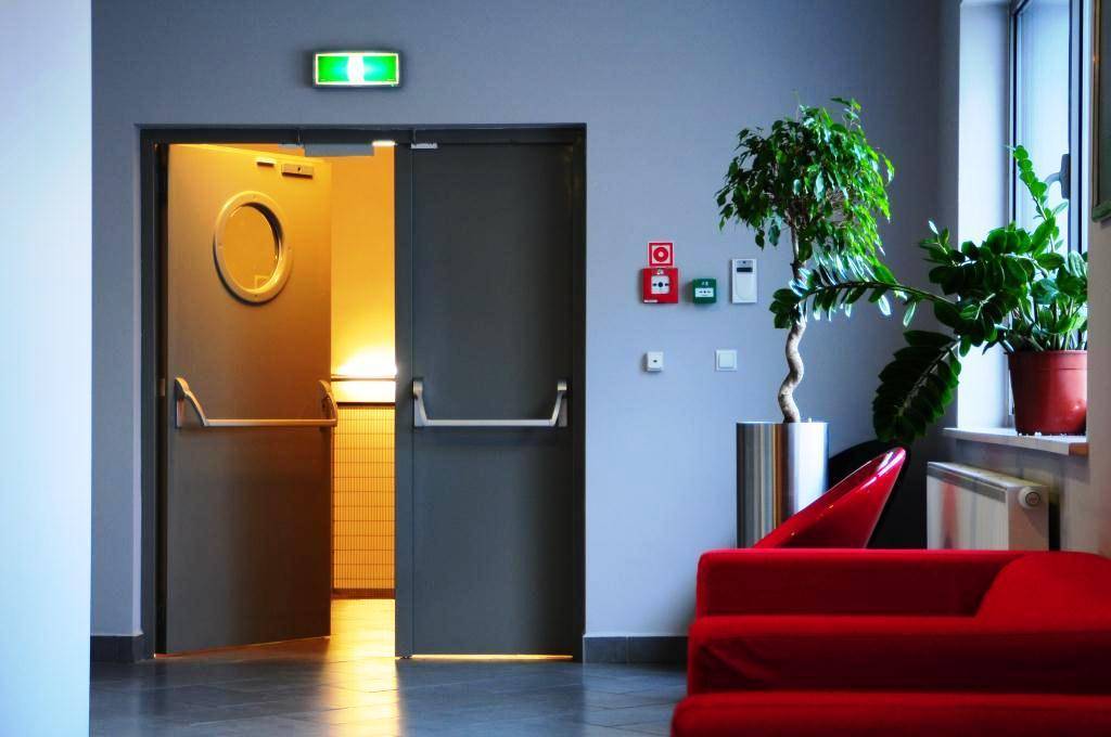 Створка двери оборудуется системой Антипаника, чтобы предупредить скопление людей в случае пожарной ситуации. Установка замка, который открывается только с внутренней стороны, запрещена.