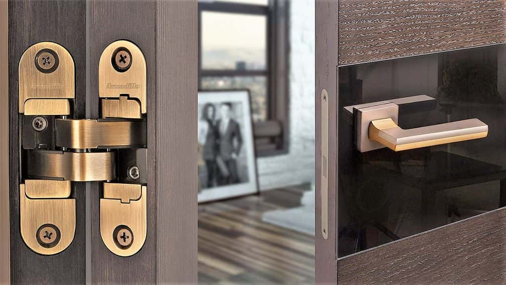 Современный усовершенствованный и популярный вариант — скрытые петли. Главное достоинство таковых устройств — высокий класс сопротивляемости взлому, что позволяет использовать фурнитуру для входной двери.