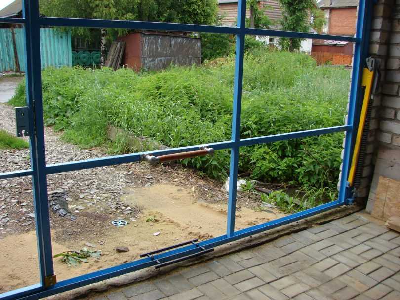 Недостатком установки таких ворот с механизмом на даче является сложность их поднятия в случае пропадания электричества.