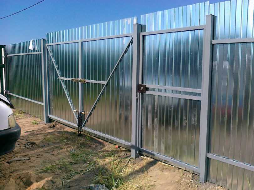 Впрочем, некоторые люди последнее преимущество воспринимают как недостаток. В таком случае, чтобы скрыть обстановку во дворе от взглядов прохожих, можно прикрепить к воротам поликарбонатные листы.