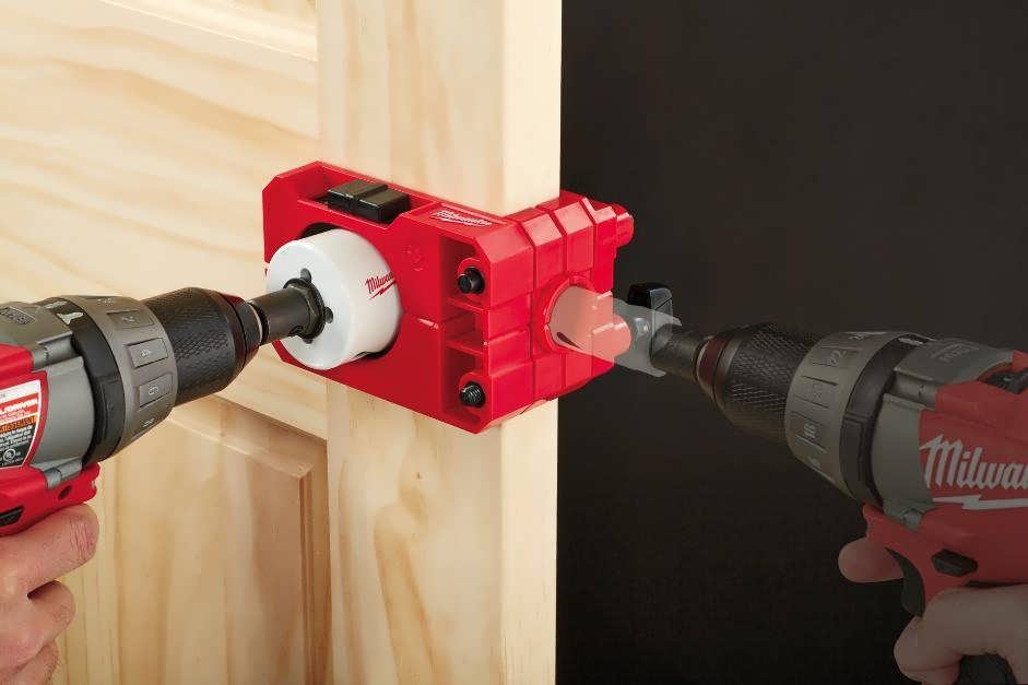 Самое главное отметить центральную точку, потому что обычно вместе с цилиндровым замком в коробке прилагаются точные шаблоны с намеченными отверстиями. Однако межкомнатные замки разных марок различаются диаметром, объемом, поэтому врезка замков в двери своими руками должна производиться фрезой по дереву в форме коронки. В случае если шаблона не было в наборе, можно подыскать необходимый диаметр на картинках в интернете и распечатать.