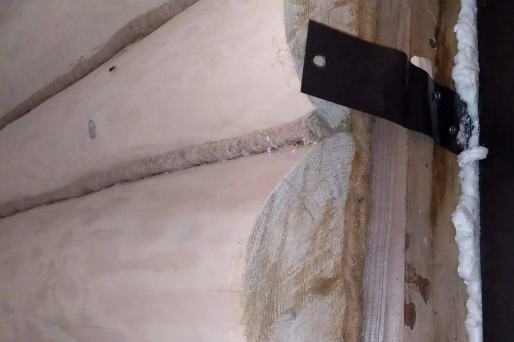 Завершают монтаж обсады установкой вершника. Он вставляется в пазы боковин. Между вершником и бревном располагается усадочный зазор 5-7 см. Его закрывают паклей. Выравнивают обсаду по уровню. Порог закрепляют на саморезы. Боковины окосячки фиксируют к закладному бруску. К стенам крепить ее нельзя. Порог можно дополнительно прибить гвоздями.