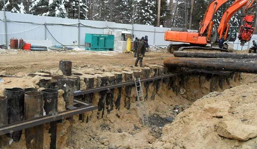 Для укрепления стенок котлована во время строительных работ применяют разные технологии, среди которых самой распространенной является шпунтовое ограждение из труб. Использование материалов, бывших в употреблении, делает сооружение защитной конструкции намного дешевле, чем применение для этих целей специальных шпунтовых профилей.