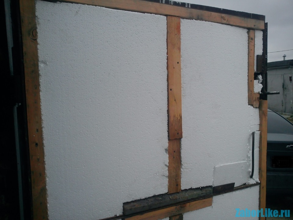 Рассматривая, как и чем утеплить ворота гаража изнутри своими руками, а также способы и варианты пошаговых действий с фото-примерами, в первую очередь следует разобраться с утеплением пенопластом: