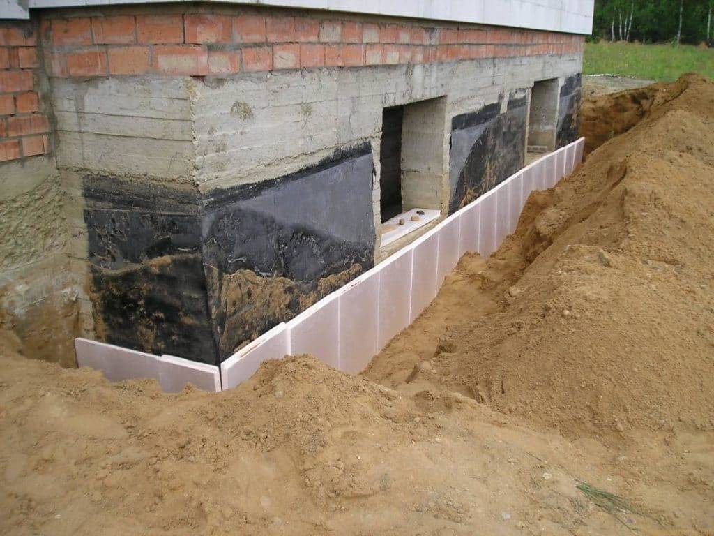Подготовительный этап нужно проводить качественно, поскольку все оставшиеся погрешности на поверхности стен значительно влияют на правильный монтаж утеплителя. Далее приступают к обустройству гидроизоляции с помощью нанесения особой мастики и только затем начинают укладку пенопласта, используя дюбели или клеевой состав.