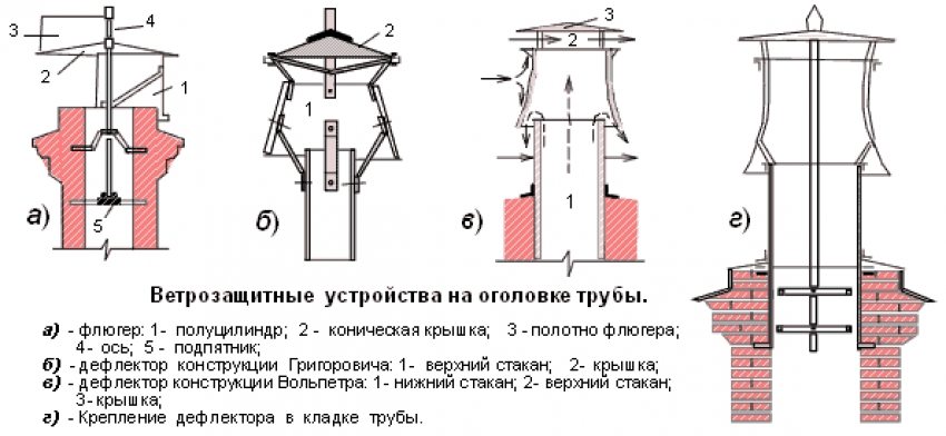 Конструкции различных дефлекторов вентиляционных труб