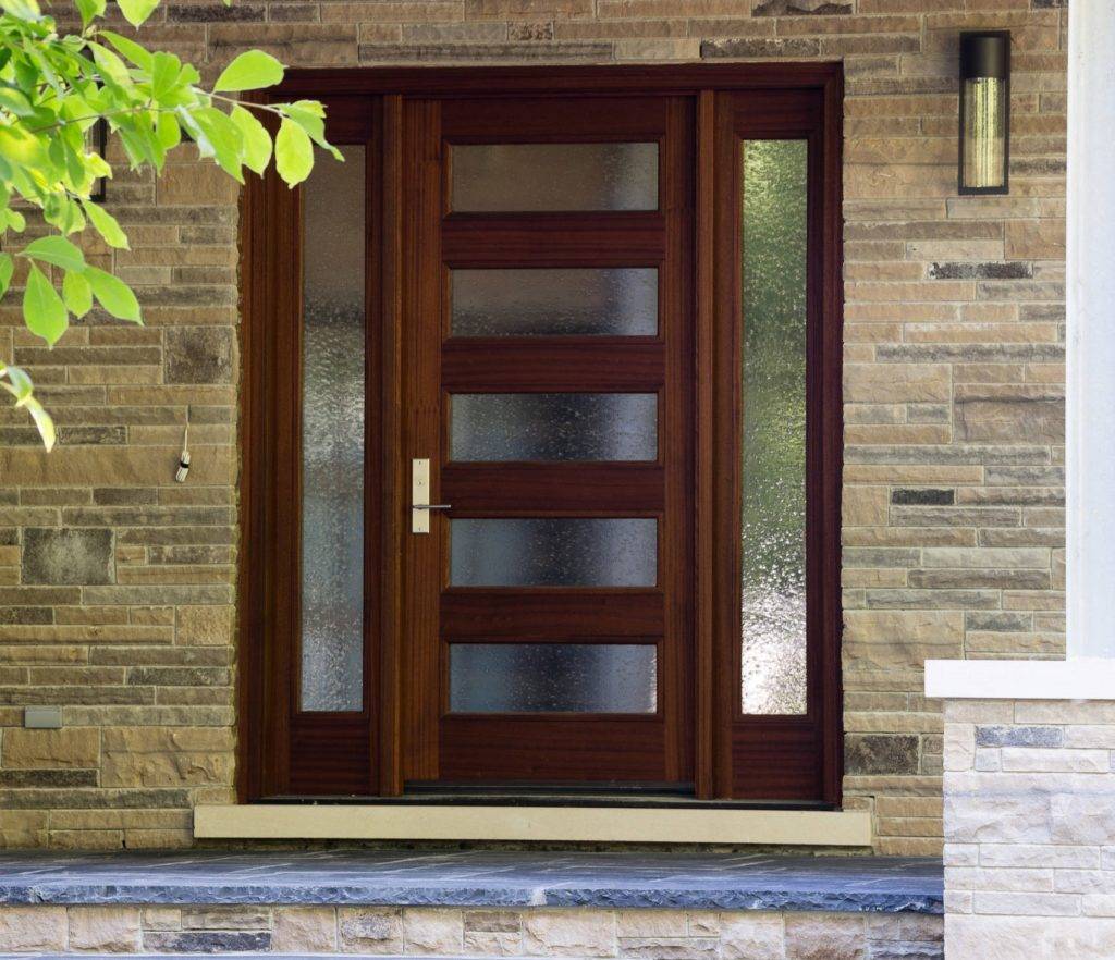 Такой материал выступает неплохим изолятором. Поэтому можно не бояться теплопотерь и шума с улицы. Но, кроме всего этого, конструкция выигрывает по внешнему виду. Стекло придает дверям оригинальность и смотрится очень эффектно, неплохо украшая весь дом.