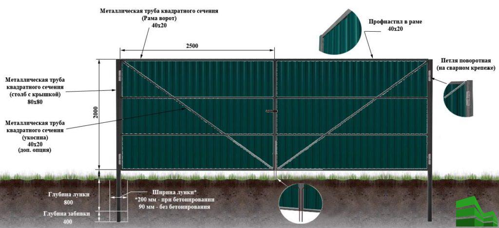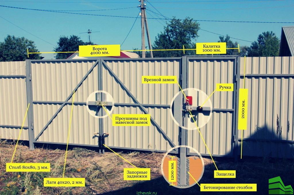 Чертеж для сборки ворот и калитки из профлиста своими силами