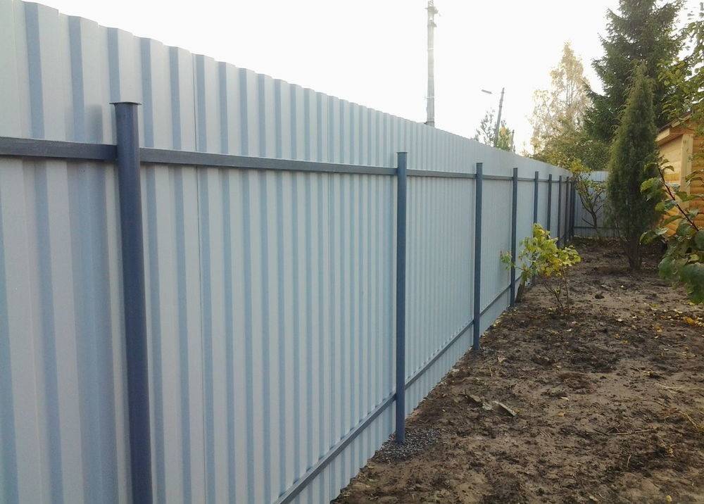 Готовый забор из профлиста на металлическом каркасе без фундамента