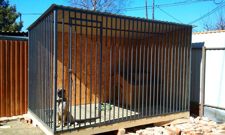 Решётчатая стена изготавливается из металлических труб. Многие собаководы делают открытую стену из металлической сетки. Это категорически запрещено, поскольку собаки, находясь в неволе, часто пытаются грызть сетку. В итоге это приводит к серьёзным повреждениям зубной эмали и болезням зубов.