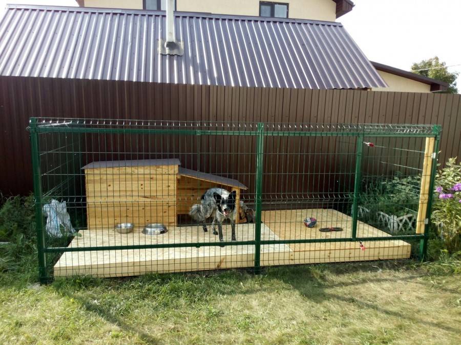 Лучшими являются постройки, имеющие в своем составе 3 функциональные зоны – утепленную будку, навес с деревянным полом для кормления и открытая часть выгула с травой.