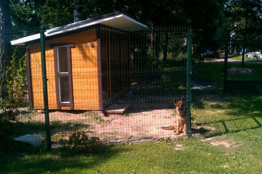 С размерами площади мы определились. А как быть с полом животного? Для суки и кобеля требования совершенно разные. Особь женского пола нуждается в родильной и тамбуре, которые будут находиться в вольере. Он должен быть максимально защищен от непогоды, ведь у суки родятся щенки и они не будут находиться в будке, а станут перемещаться по всей площади для своих игр.