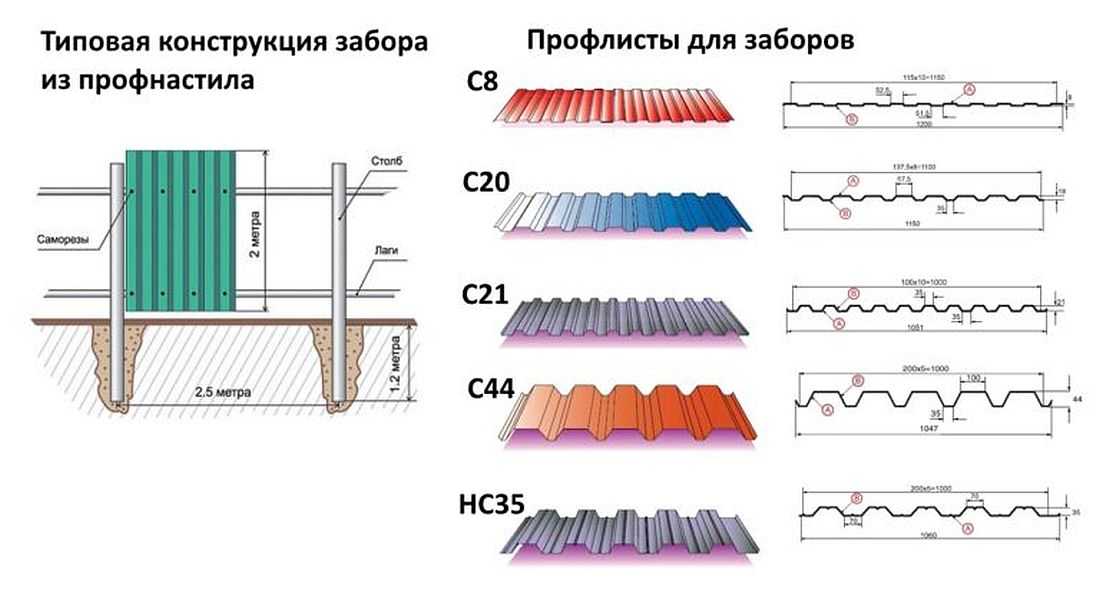 Для подбора профнастила требуется смотреть сначала на ландшафт, рельеф, климат. Когда забор небольшой высоты, расположен в местности с несильным ветром, то достаточно материала с маркировкой С-8, С-10. Но при высоком заборе в местности с частыми порывами ветра, например, на открытом пространстве, требуются листы С-14, С-15, С-18. Когда нужна повышенная прочность, лучше отдавать предпочтение С-20 или С-21.