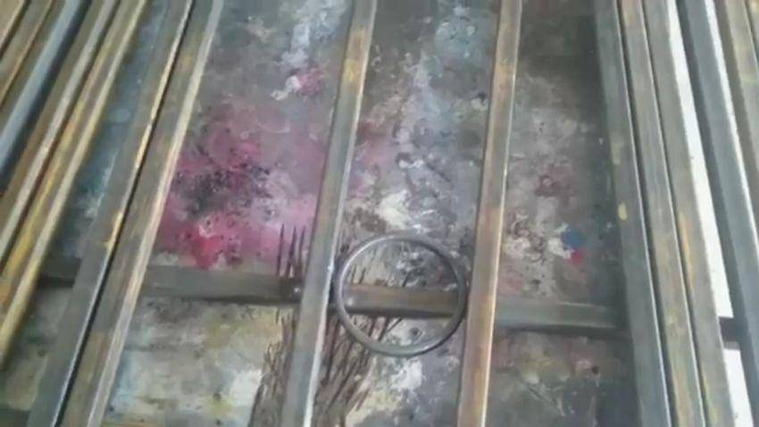 Шаг 1. Вначале изготовьте каркас рамы полотна. Возьмите 3 профильные трубы (в примере – с пиками на концах), уложите их параллельно друг другу. Они послужат в качестве вертикалей ворот.