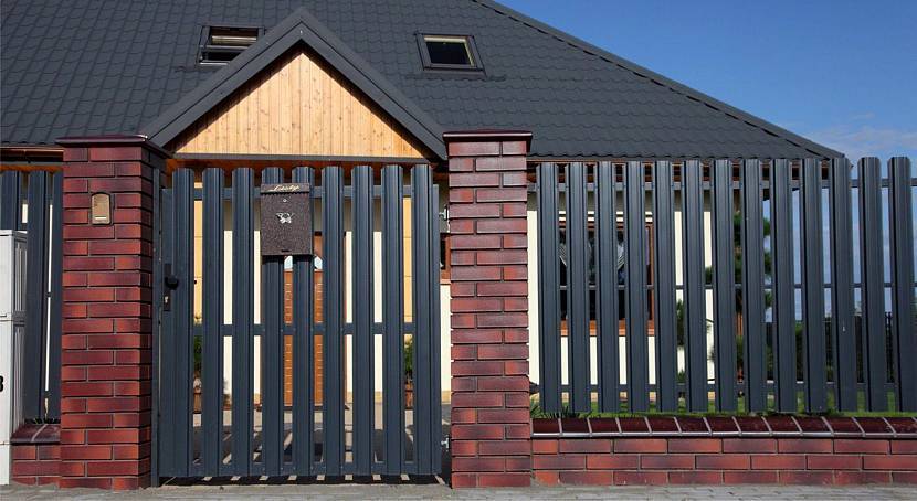 Евроштакетник в заборе и калитке черного цветаИсточник dizainexpert.ru