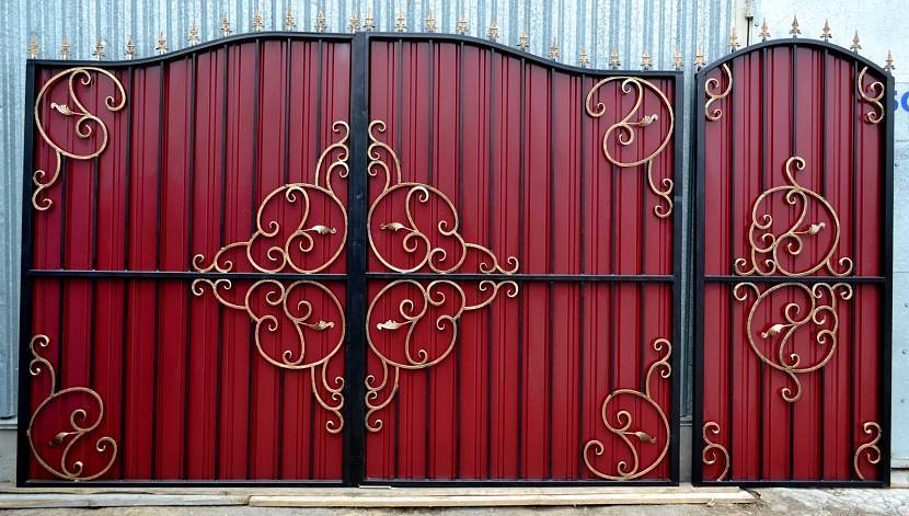 Ворота из профнастила с элементами ковки очень популярны за счет того, что имеют целый ряд основных достоинств: