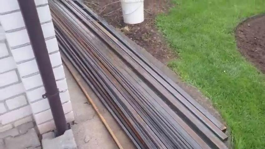 Металлопрокат обязательно обработать антикоррозийной жидкостью пред тем, как поставить в выкопанные углубления, засыпать ямки щебнем с последующей утрамбовкой.
