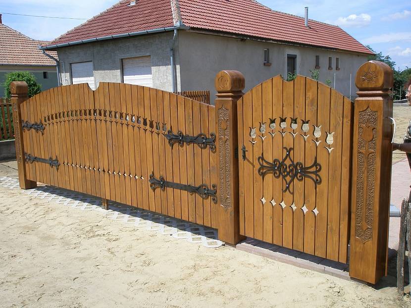- древесина легко обрабатывается, поэтому из нее можно создавать любые конфигурации ворот;