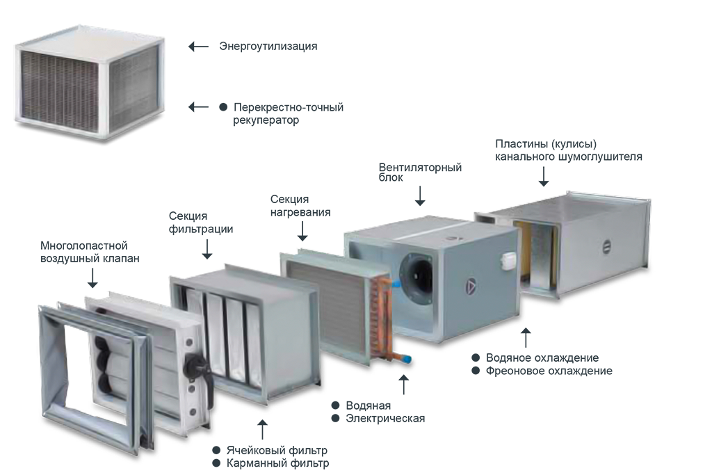 В середине самого аппарата есть теплообменник. Это такой вентилятор, что обеспечивает нужное и регламентированное движение воздуха.