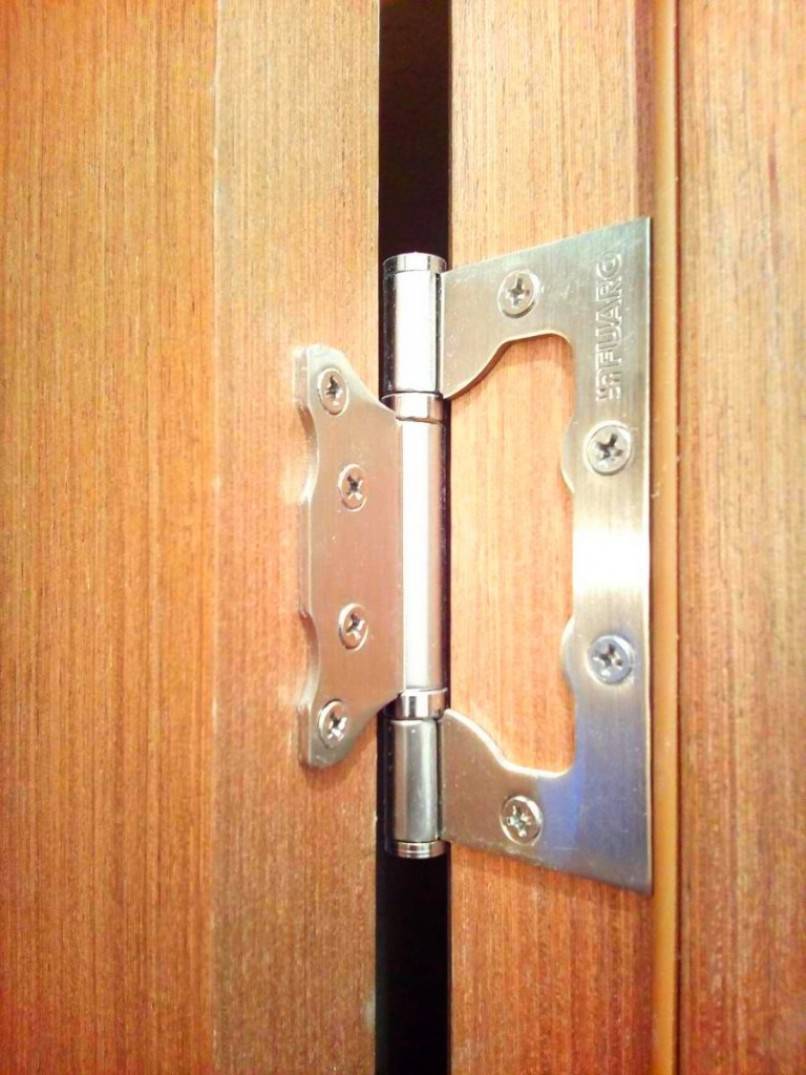 петли-бабочка — не врезные, накладные петли. Легко и просто устанавливаются. Свое название они получили за особую необычную конструкцию – оба ее элемента в открытом состоянии напоминают крылья бабочки. В процессе закрывания дверной створки одна часть петли легко входит в другой, образуя единое целое. Обычно такие петли ставятся на облегченные двери.