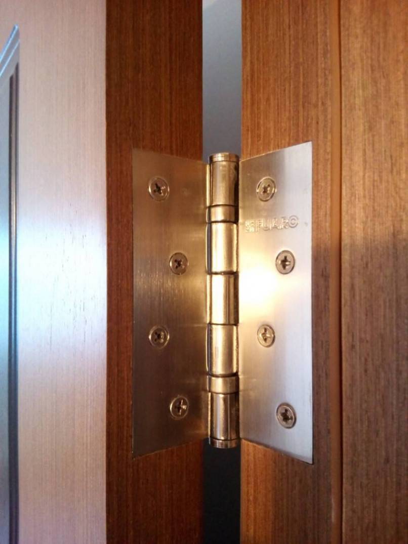 Петли навешиваются на расстоянии 20 см. от верха и низа дверного полотна. Очень важна толщина металла и отсутствие люфта. Если толщина металла петли 3 мм., то это хорошие петли, гораздо чаще встречается толщина 2-2,5мм. Очень хорошо если петли изготовлены из латуни, стали. Наиболее распространенные дверные петли бывают нескольких типов: