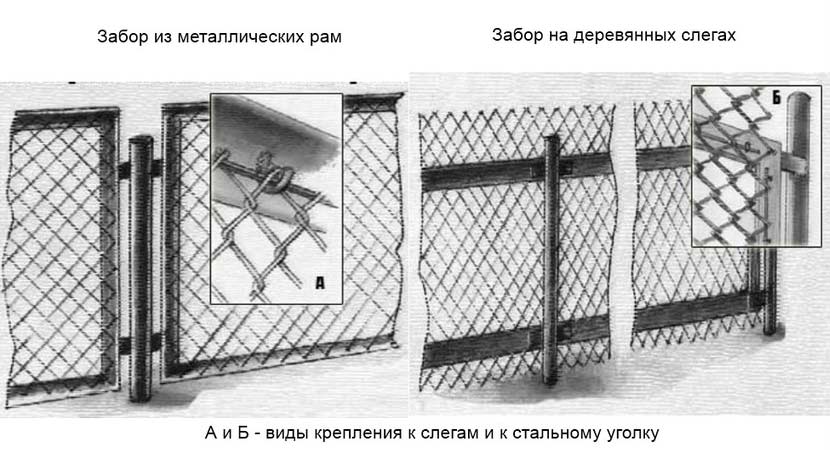 | Монтируется сетка с помощью подходящих систем крепления. Для сетки-рабицы можно использовать специальный крепёж либо обычную вязальную проволоку |