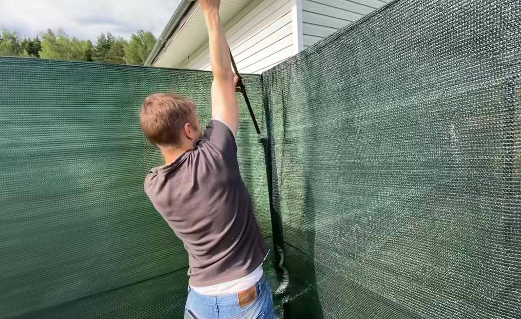Не стоит затягивать хомуты слишком плотно, лучше оставить свободный ход, пределы которого не превышают 12-17 мм. Иначе в ветреную погоду сетка в местах крепления будет быстрее протираться.