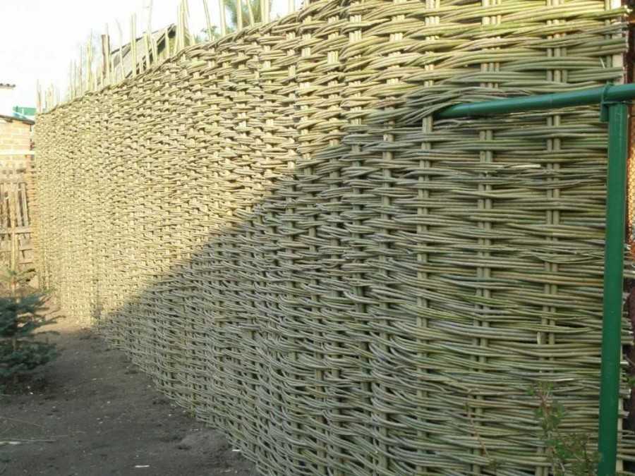 - Методика вязания лозы – в шахматном порядке. Через равные промежутки плетения следует пропускать также металлическую проволоку для усиления прочности забора.