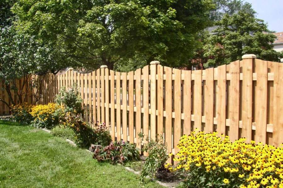 Множество вертикальных штакетин, реек или нешироких досок ставят вплотную так, что они образуют единое покрытие без зазоров. Получается массивная и прочная конструкция, которая может быть разной высоты.