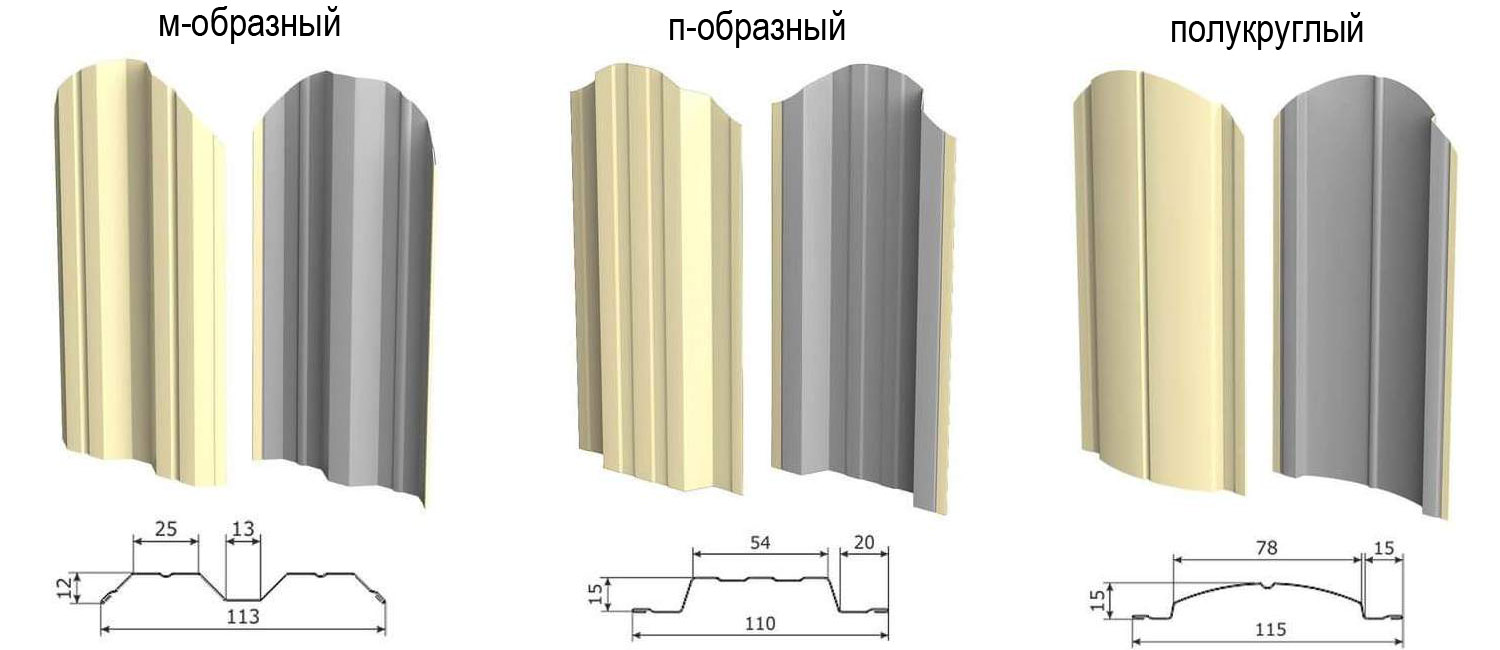 - П-образный. Форма похожа на трапецию с плоскими краями по бокам. Если планки такой формы имеют дополнительные ребра жесткости с завальцованными краями, то жесткость будет ничем ни хуже предыдущего варианта;