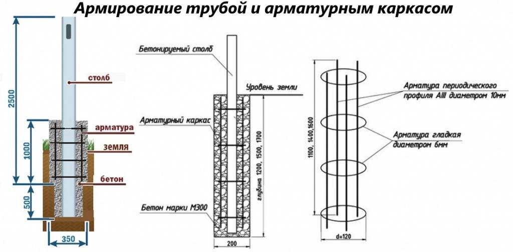 Для увлажненных пучинистых грунтов глубина траншеи под пролетом может быть такой же, как и для столба. В остальных случаях обычно устраивают мелкозаглубленный фундамент, полагая что вес конструкции пролета достаточный для компенсации незначительного пучения – стандартный размер находится в пределах 40-60 см.