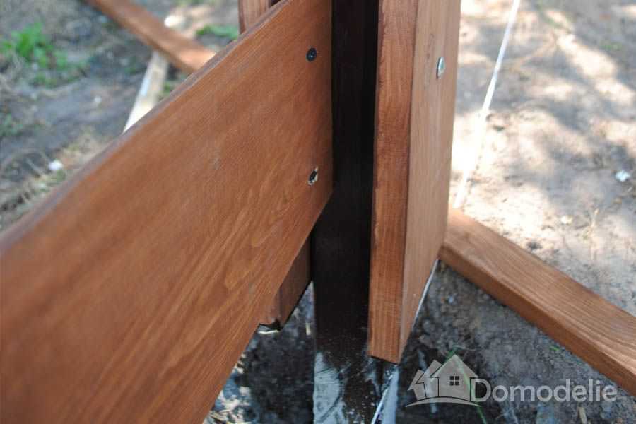 Важно: пазы обязательно обработайте антисептиком или битумом, а места крепления оберните рубероидом