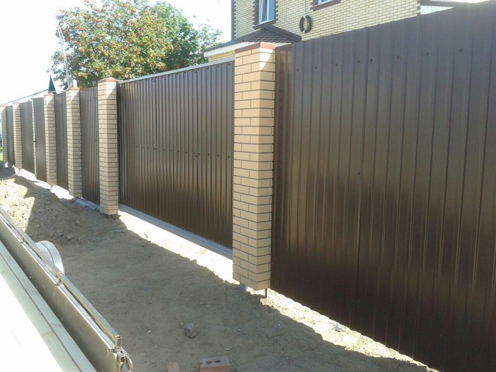 - эстетичность – добавление «кирпичных» столбов в однотонные секции забора из профлиста, частокола, штакетника, плетня резко повышает качество экстерьера