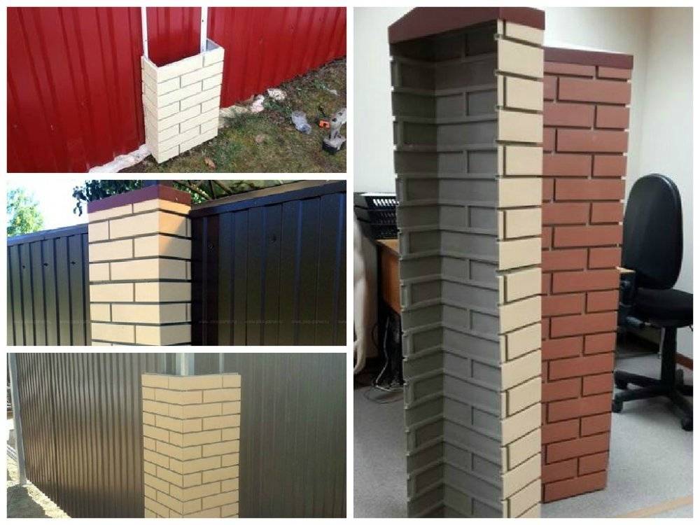 —Имитация кирпичного столба выполняет чисто декоративную функцию,хотя, если задуматься,функция кирпичного столба для забора из профлиста или евроштакетника тоже чисто декоративная.