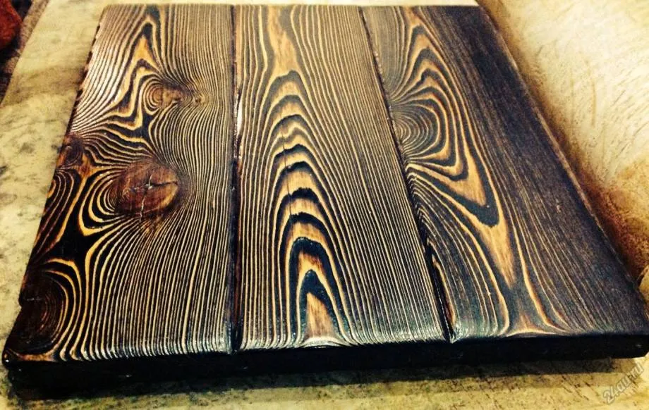 Кстати, отличный способ выделить рисунок дерева и защитить его от разрушения – это легкий обжиг открытым пламенем с помощью газовой горелки.