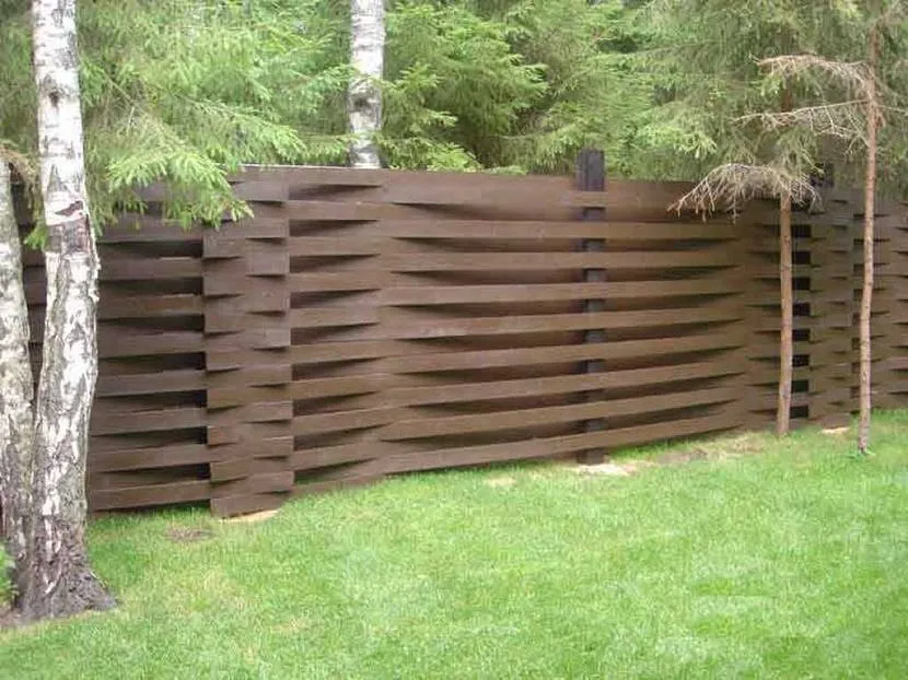 Темное ограждение-плетенка из дерева для загородного домаИсточник samstroy.com