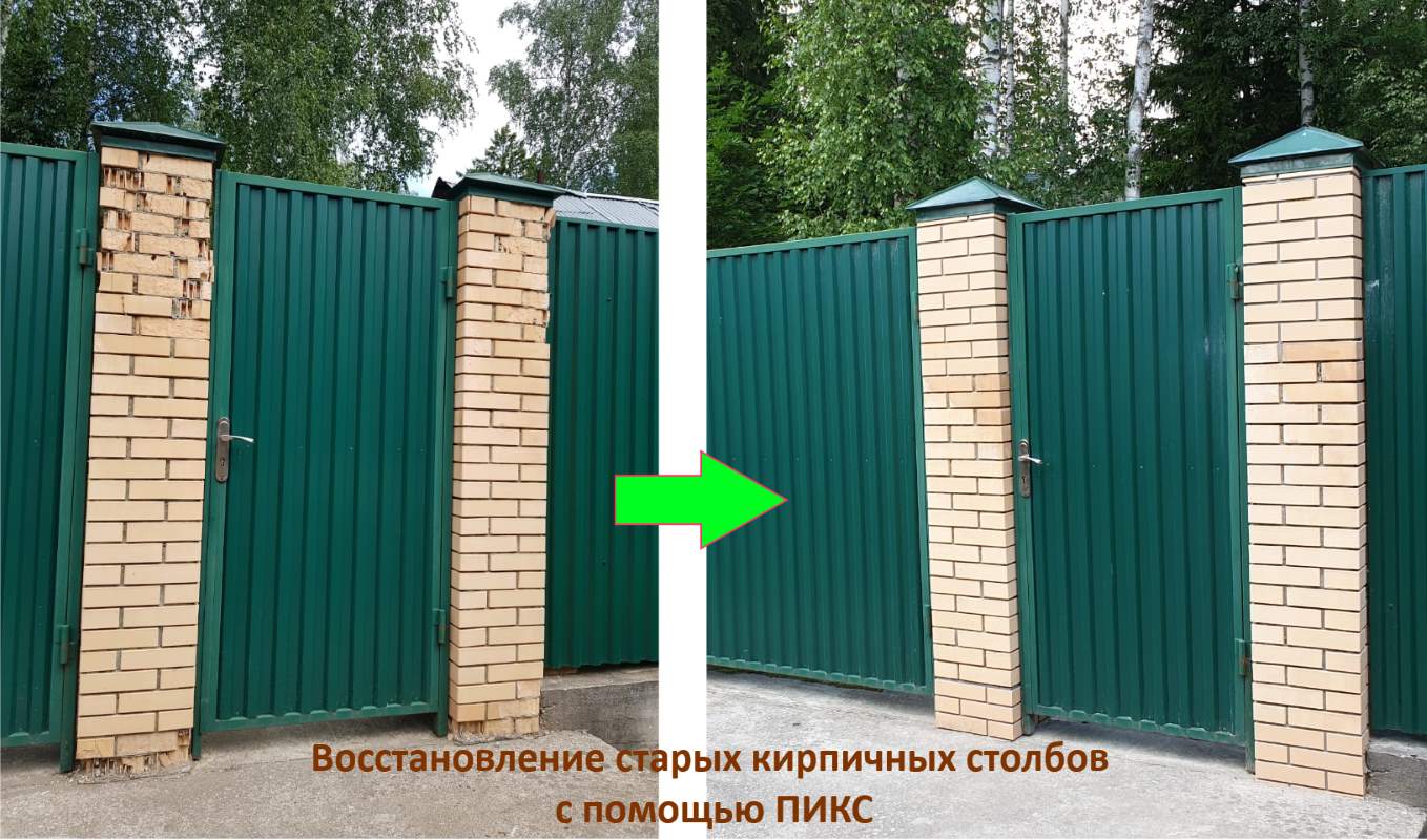 Восстановление старых кирпичных столбов с помощью ПИКС