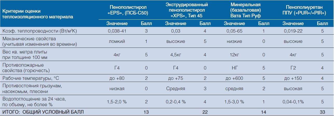 Пенополиуретан имеет еще большую плотность и менее гигроскопичен, чем пенополистирол. В таблице приведены основные характеристики перечисленных выше теплоизоляционных материалов.