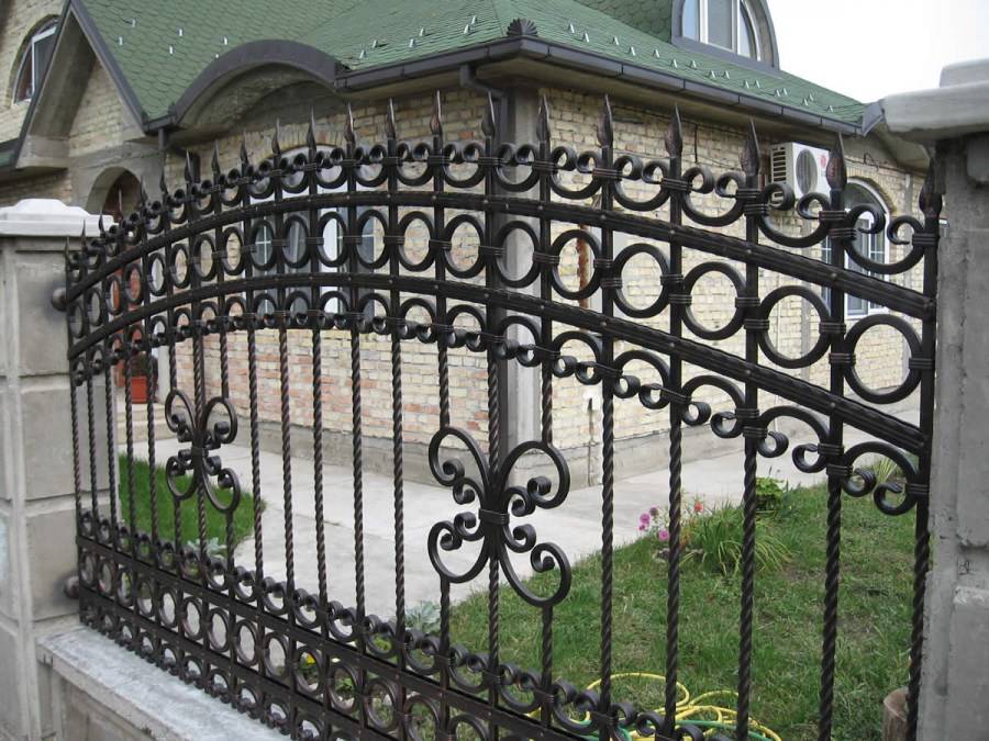 Кованые ограждения относятся к самым элитным видам заборов из металла. Хотя они стоят очень дорого, но и смотрятся по сравнению с другими весьма солидно. Его выделяет наличие надежности и долговечности. Выполненные из него конструкции способны выдержать любые отрицательные погодные влияния. Это никак не сказывается на продолжительности их службы. Такой стойкой крепости не страшны механические воздействия, даже если на него наедет машина.