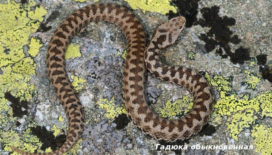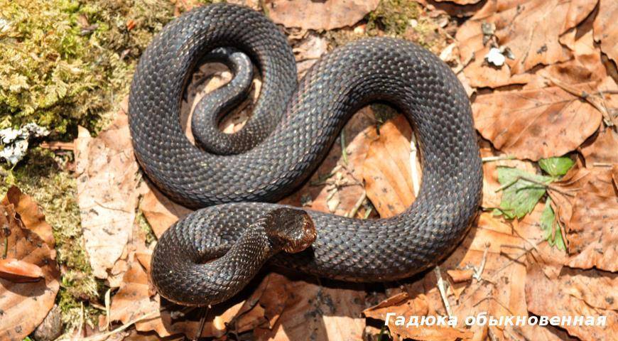 Гадюка – это наиболее опасная из распространенных змей. Её длина достигает 65 см. В большинстве случаев имеет черный окрас, однако встречаются особи серого или зеленого оттенка. Практически все змеи данного вида имеют рисунок на спине. В виде зигзага или волны.