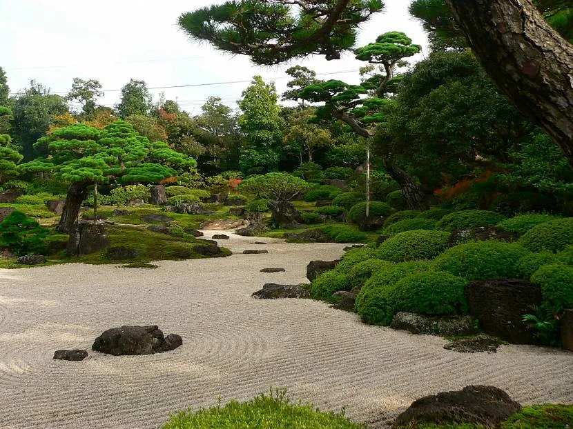 Оригинальности саду добавляют формованные растения, бонсай. Японский стиль приветствует замену газона мхом.
