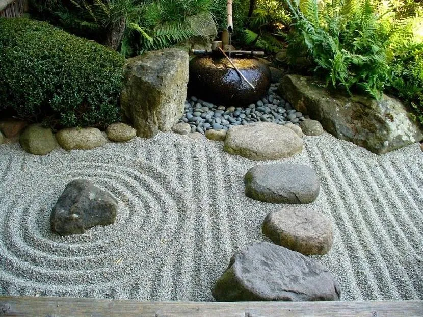 Да и сама скульптура не может быть какой угодно. Это продолговатый сосуд, из которого течет вода, встраивается он в композиции из камней или растений. Водоем можно даже сымитировать с помощью каре-сансуи — это композиции из песка и гальки, которые чем-то напоминают водное зеркало. Чтобы почувствовать себя в Японии, можно не весь сад стилизовать в этом стиле, а создать небольшой японский уголок с наиболее характерным для этой страны дизайном.
