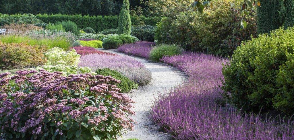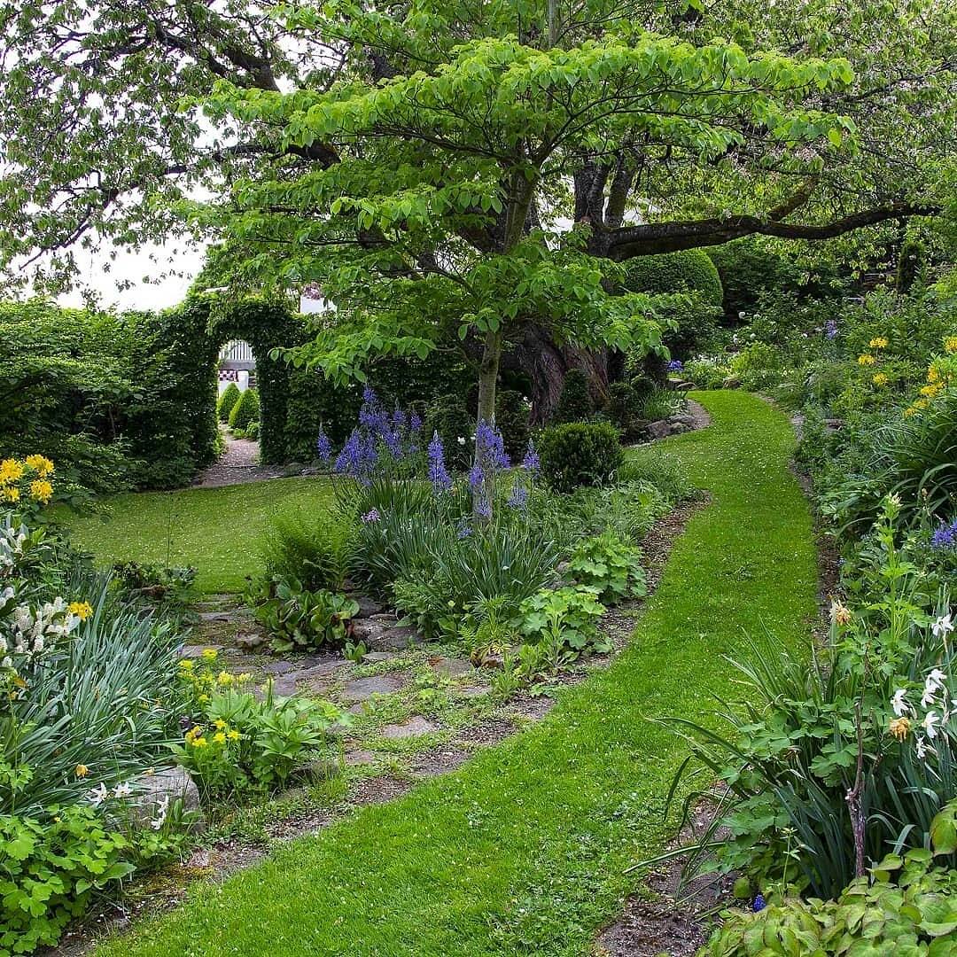 Из кустарников распространены бузина, сирень, рододендроны, спирея, лапчатка кустарниковая и снежноягодник. Маки, ромашки, герань, колокольчики, купальницы, васильки, гвоздики, люпины, рудбекия, флоксы, астры, кусты пионов, дельфиниумы и островки многолетнего льна должны оживить сад и придать ему разнообразия. Очень популярны пионы.